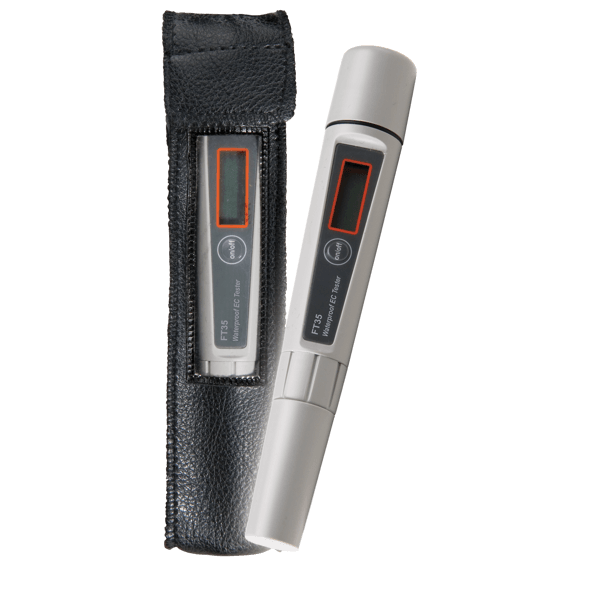 Electronic EC Meter (Electronic Conductivity) Accuracy: +/- 2% FS Calibration: 1 point manual Aut. Temp. Comp.: aut. (0 - 50°C / ß=2%/°C) Battery life: 3 x 1.5 V (250 h) Environment: 0 - 50°C, RH 100% Dimensions (Weight): 153 x 24 mm (45g) Reference solution: 12.88 mS/cm (20 ml sachet) pH-value (pH)